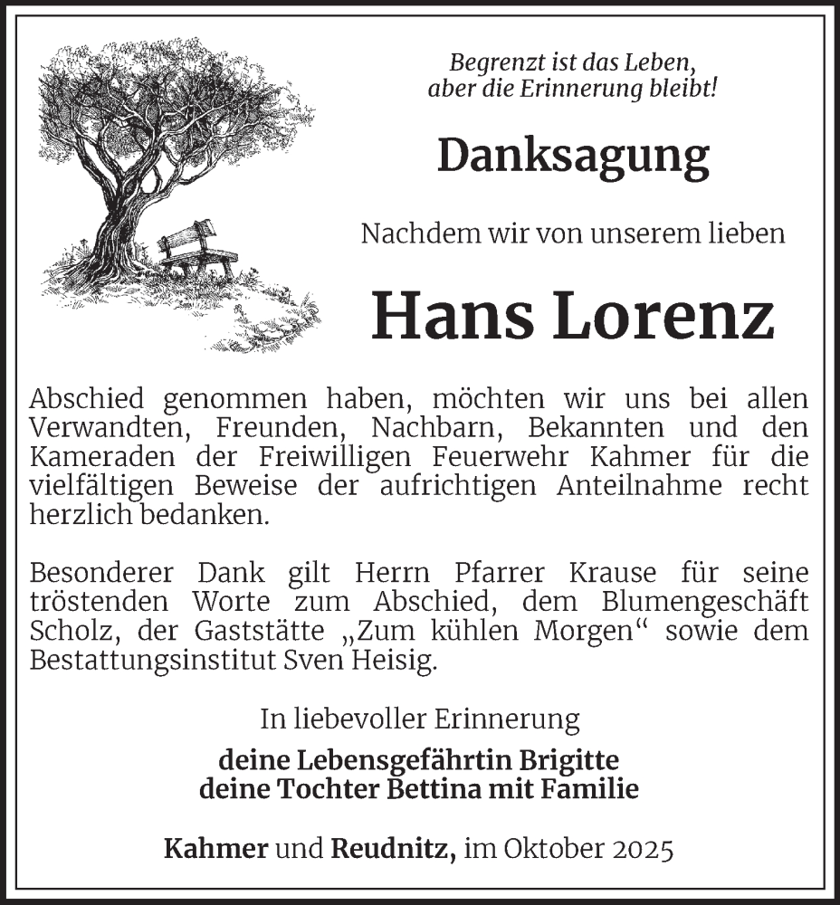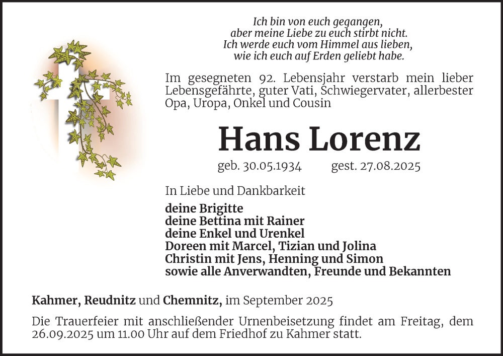 Hier finden Sie alle Traueranzeigen aus der Zeitung, die bisher für Hans Lorenz erschienen sind. Weitere Traueranzeigen, die in der Zeitung erscheinen, werden hier ebenfalls aufgelistet