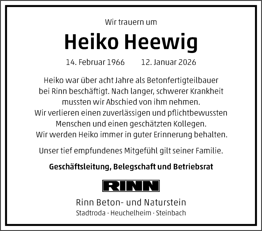 Hier finden Sie alle Traueranzeigen aus der Zeitung, die bisher für Heiko Heewig erschienen sind. Weitere Traueranzeigen, die in der Zeitung erscheinen, werden hier ebenfalls aufgelistet