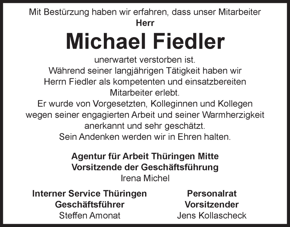 Hier finden Sie alle Traueranzeigen aus der Zeitung, die bisher für Michael Fiedler erschienen sind. Weitere Traueranzeigen, die in der Zeitung erscheinen, werden hier ebenfalls aufgelistet