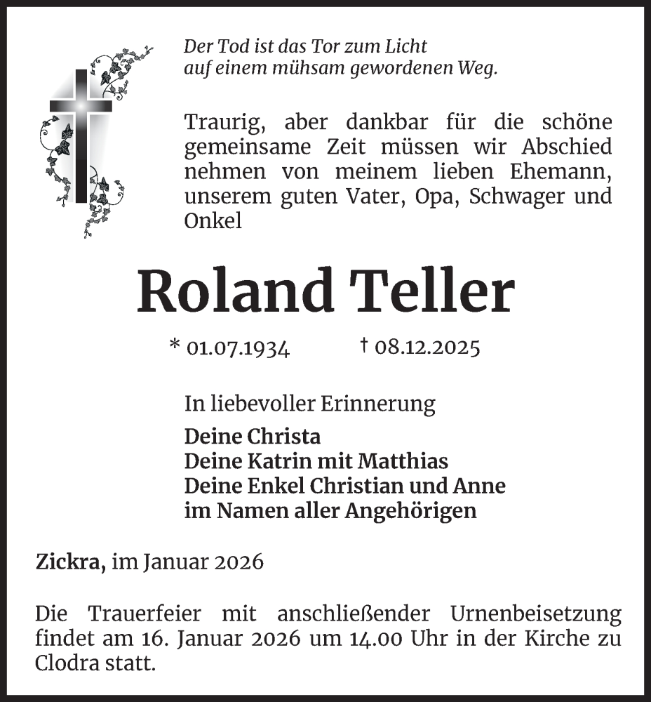 Hier finden Sie alle Traueranzeigen aus der Zeitung, die bisher für Roland Teller erschienen sind. Weitere Traueranzeigen, die in der Zeitung erscheinen, werden hier ebenfalls aufgelistet